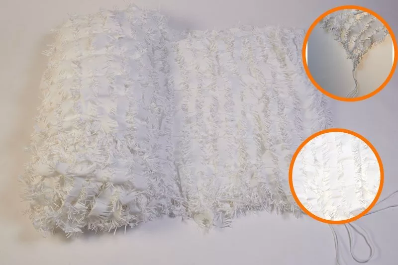 Конструкция камуфляжного полотна довольно проста. Оно состоит из 2 частей: сетки-основы и навесных элементов, создающих иллюзию окружающего пейзажа.